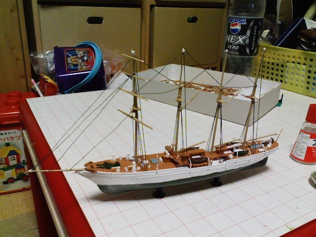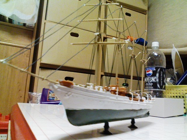 横帆のサイズが2枚、大きかったですね・・・ちょっと失敗したかも・・・まぁ処女作という事でこれで完成にします。次に繋げれるように色々と勉強できました。