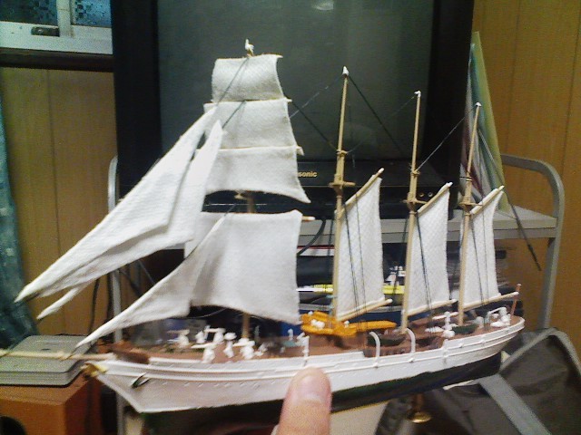 木造船ならともかく、近代帆船なら布帆にすれば本家木造帆船模型にも"見た目コレクション"的にはあまり遜色ないです。