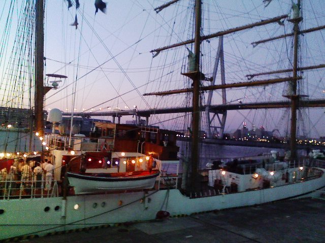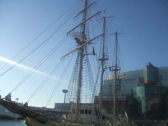 駅からマストが見える…あこがれも3本マストだけど高さや幅が違う。あえていうなら「コンパクトな大型帆船」といったところ。
