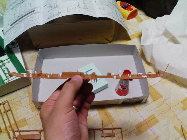 昨日の作業はココまで、次はロープ張りなんだけどとりあえず甲板の部品が米粒