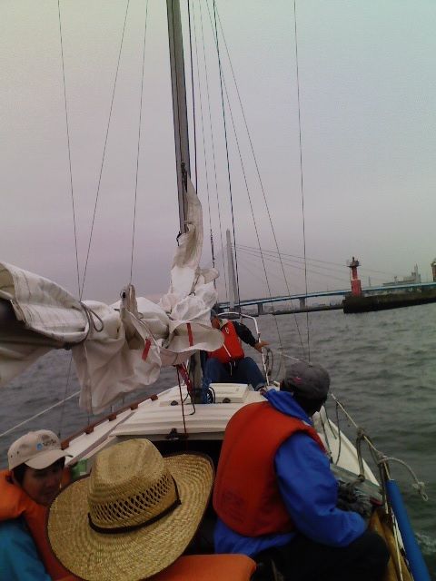 夕刻前に雨が上がったのでディンギーではなくヨットで海上にでてセーリングに。